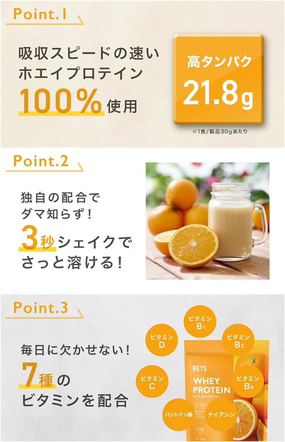 REYS レイズ ホエイ プロテイン 山澤 礼明 監修 1kg 国内製造 ビタミン7種配合 WPCプロテイン オレンジ風味
